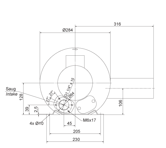 Bis 21,83 m³/min und 750 mbar. Gehäuse und offene Laufräder aus Aluminiumguss. Direkter Antrieb, integrierter Temperaturwächter, integrierter Schalldämpfer, kompakte Bauweise, weitgehend korrosionsbeständig.