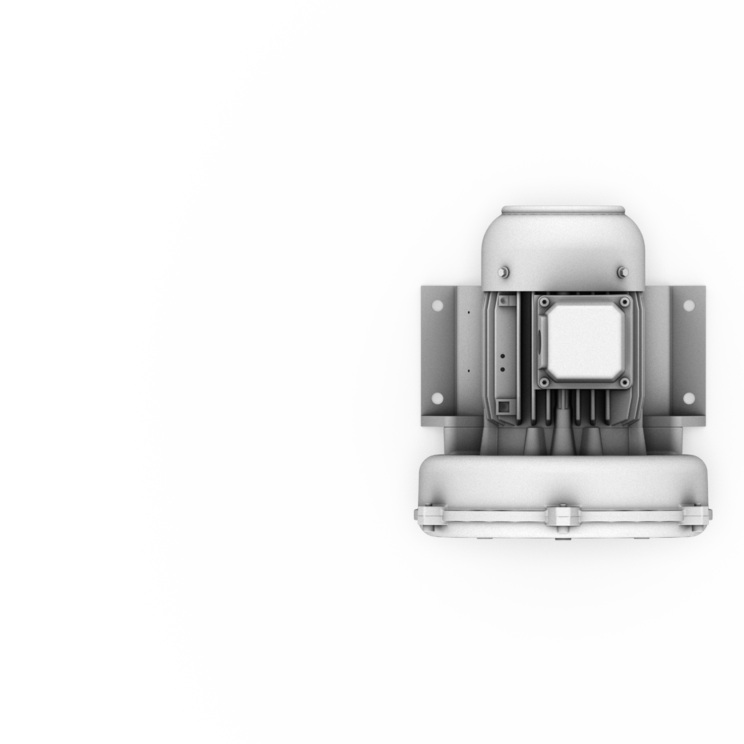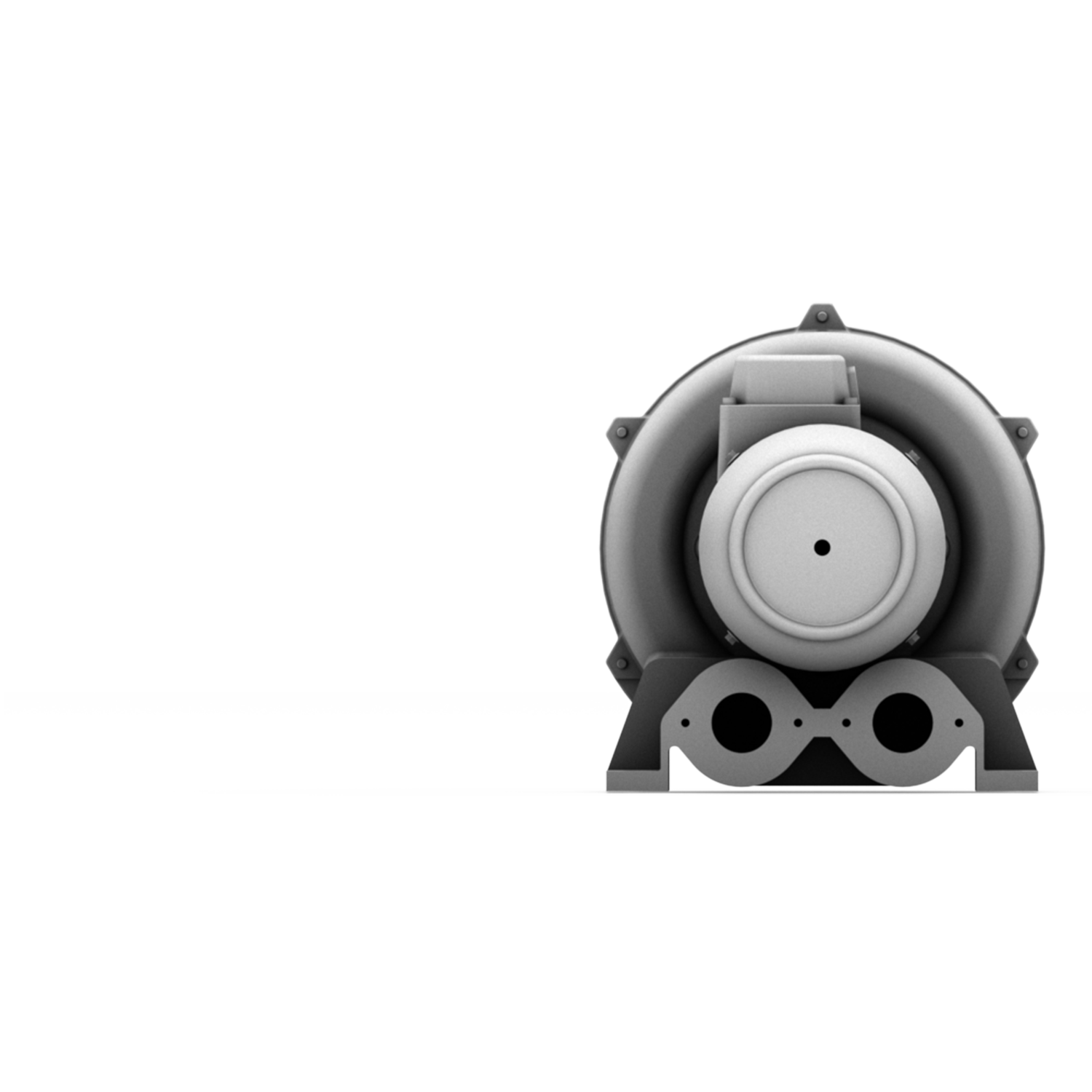 Bis 19 m³/min und 410 mbar. Gehäuse und offene/geschlossene Laufräder aus Aluminiumguss. Direkter Antrieb, integrierter Schalldämpfer, kompakte Bauweise, weitgehend korrosionsbeständig.