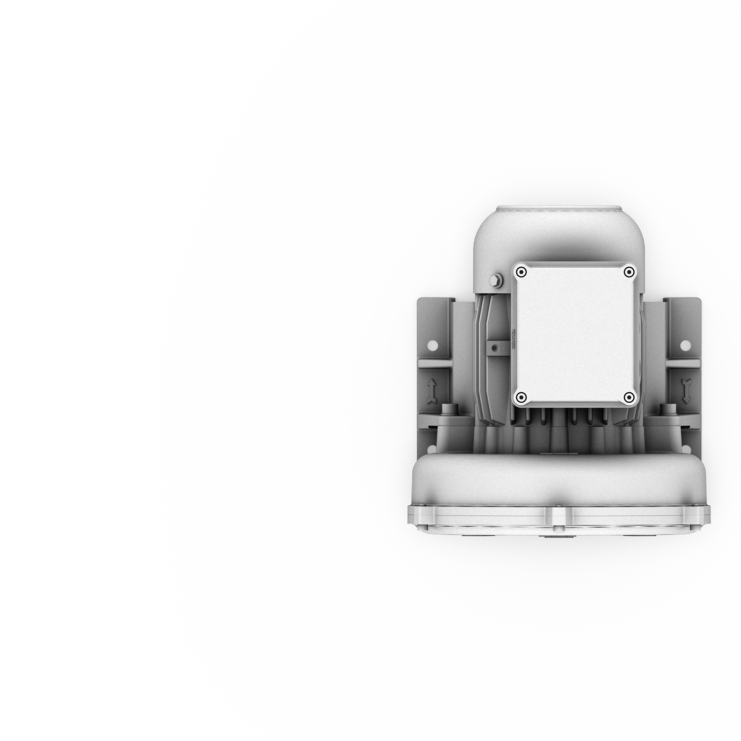 Op til 10,5 m³/min. og 370 mbar. Slidfrit, direkte drev via eksterne (FU) eller monterede (FUK) frekvensomformere. Drejning op til 80 Hz (ca. 4.700 o / min) Hus og åbne / lukkede skovlhjul lavet af støbt aluminium. IE2-kompatibel, integreret temperaturføler, integreret lyddæmper, kompakt design, stort set korrosionsbestandig.