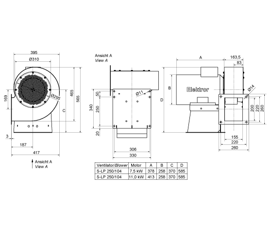 Hasta 115 m³/min y 3.050 Pa. Carcasa de acero o acero inoxidable, rodetes de tambor inclinados hacia delante de chapa de acero galvanizada o acero inoxidable. En la versión de acero inoxidable: eje de acero niro y máxima resistencia a la corrosión. Posibilidades de conexión variables.