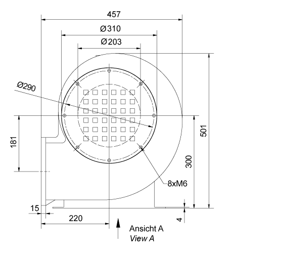 最高 95 m³/min 和 2200 Pa。 由铝铸件制成的外壳,由镀锌钢板制成的向前弯曲的鼓形滚筒,十分耐腐蚀。