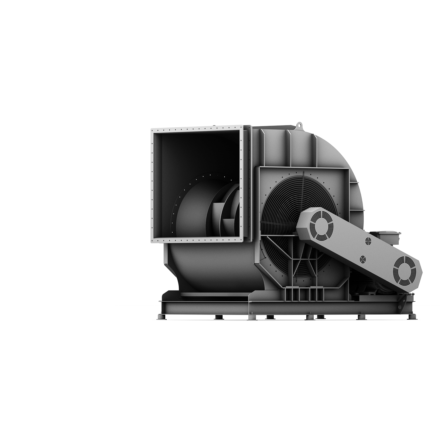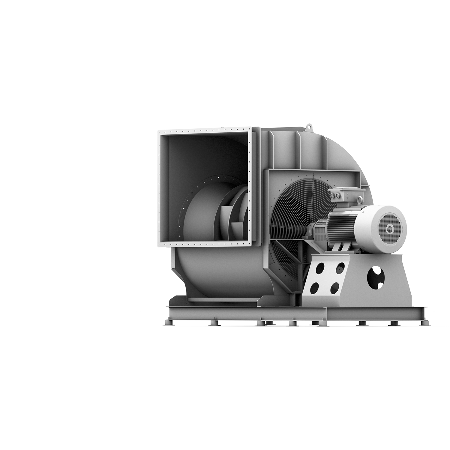 Bis 580.000 m³/h (9.700 m³/min) und 2.700 Pa. Doppelseitig saugend. Mit Kupplungs- oder Riemenantrieb - auch Frequenzumrichterbetrieb möglich. Gehäuse und Laufräder mit rückwärtsgekrümmten Schaufeln aus Stahl oder Edelstahl. Variable Anschlussmöglichkeiten. Ventilatoren dieser Baureihe werden stets projektspezifisch ausgelegt.