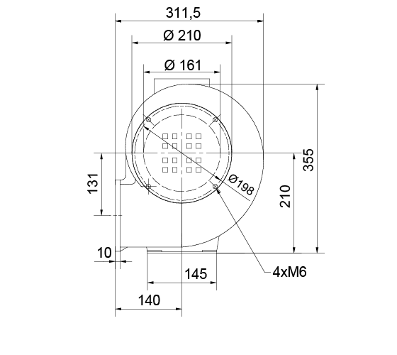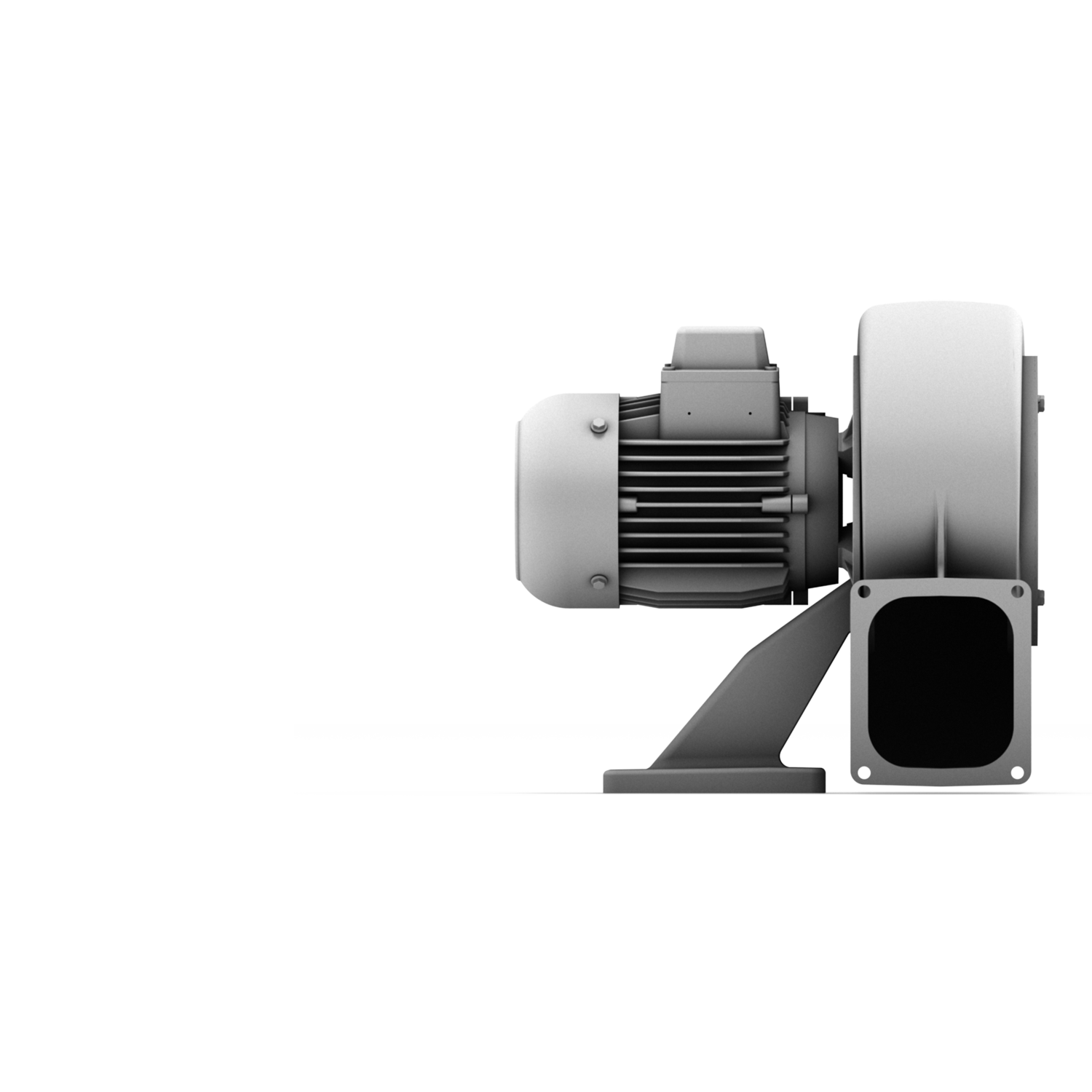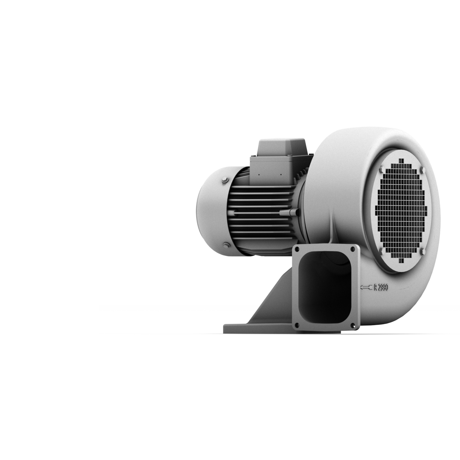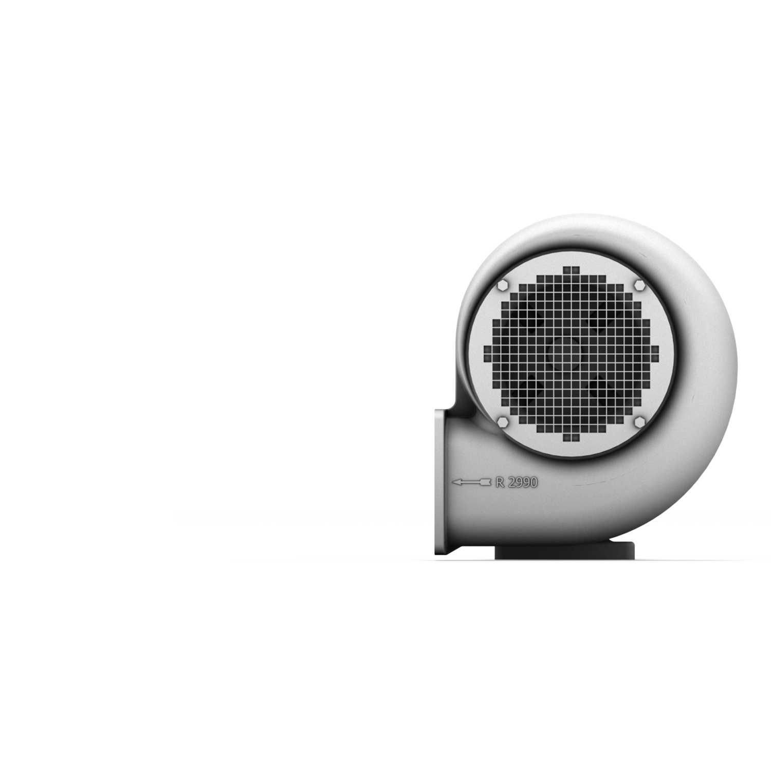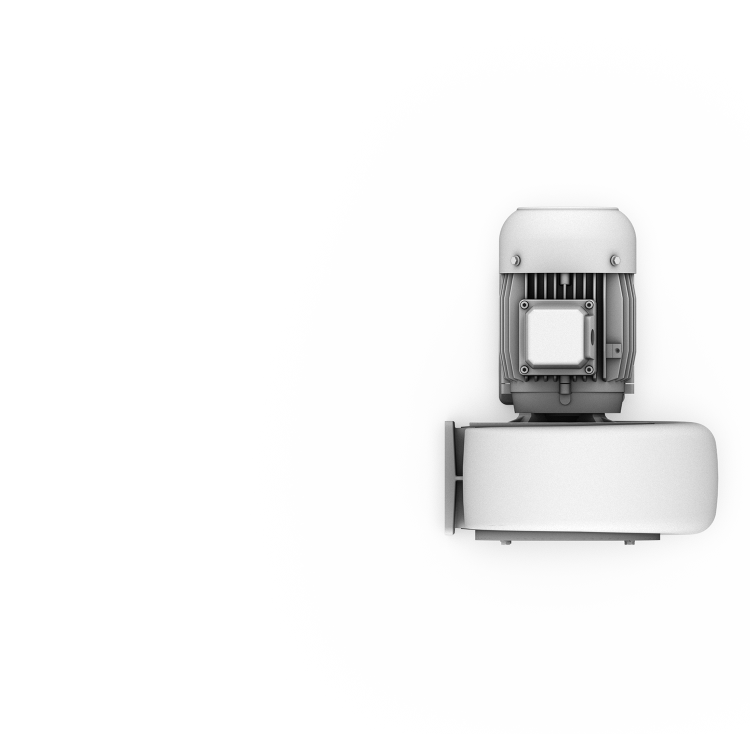 Bis 95 m³/min und 2.200 Pa. Gehäuse aus Aluminiumguss, vorwärtsgekrümmte Trommelläufer aus verzinktem Stahlblech, weitgehend korrosionsbeständig.