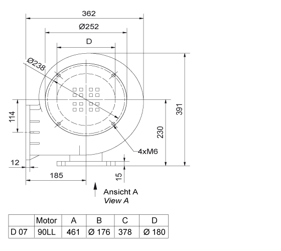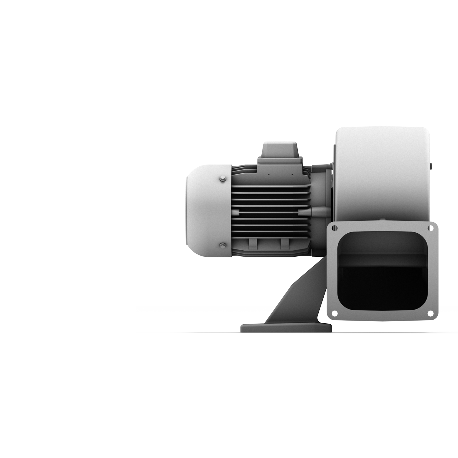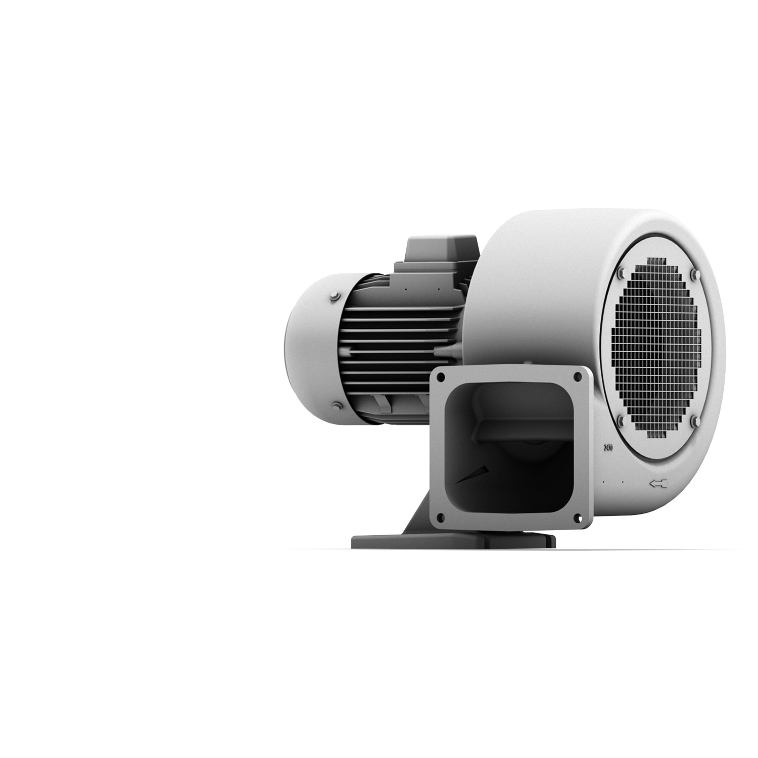 Bis 95 m³/min und 2.200 Pa. Gehäuse aus Aluminiumguss, vorwärtsgekrümmte Trommelläufer aus verzinktem Stahlblech, weitgehend korrosionsbeständig.