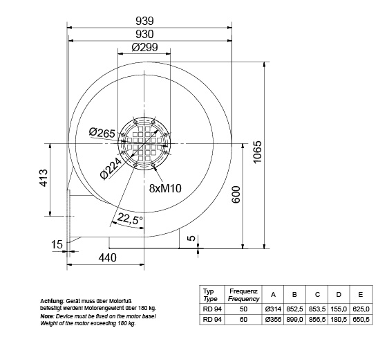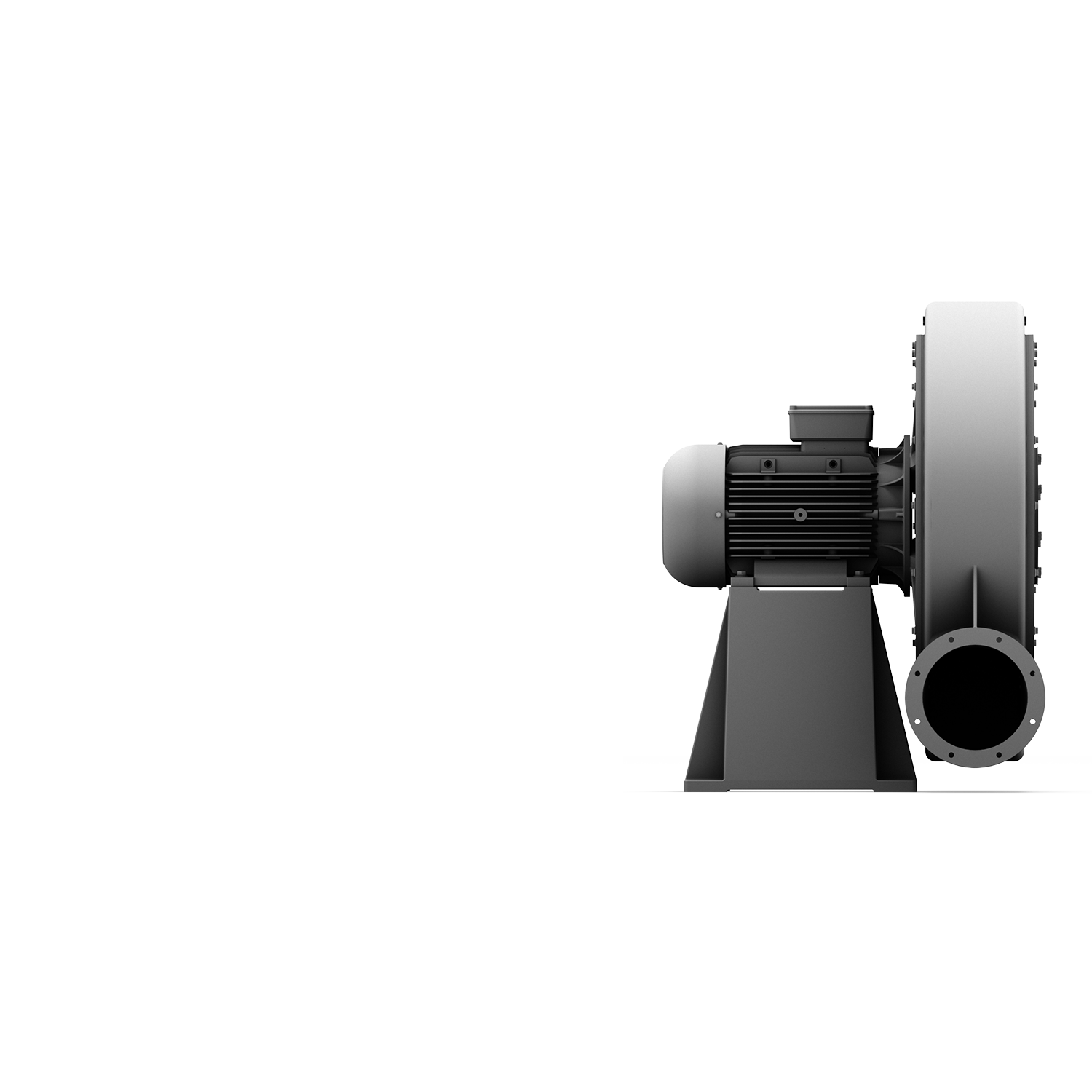 Bis 142 m³/min und 10.600 Pa. Gehäuse aus Aluminiumguss, vorwiegend rückwärtsgekrümmte Laufräder aus Aluminium, weitgehend korrosionsbeständig.