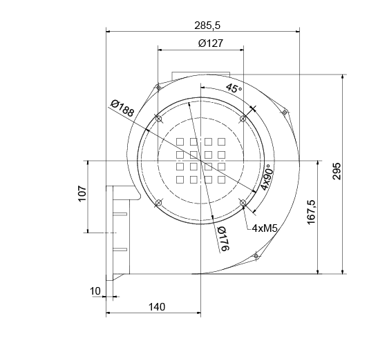 Až 95 m³/min a 2 200 Pa. Kryty z hliníkové slitiny, převážně dopředu zahnutý bubnový rotor z pozinkovaného ocelového plechu, prodloužená odolnost proti korozi.
