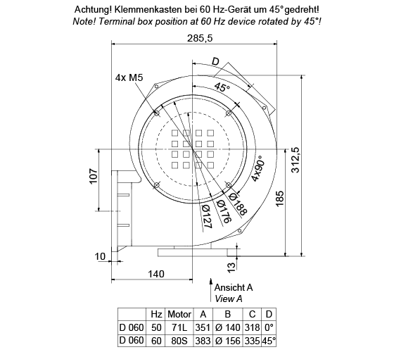 Až 95 m³/min a 2 200 Pa. Kryty z hliníkové slitiny, převážně dopředu zahnutý bubnový rotor z pozinkovaného ocelového plechu, prodloužená odolnost proti korozi.