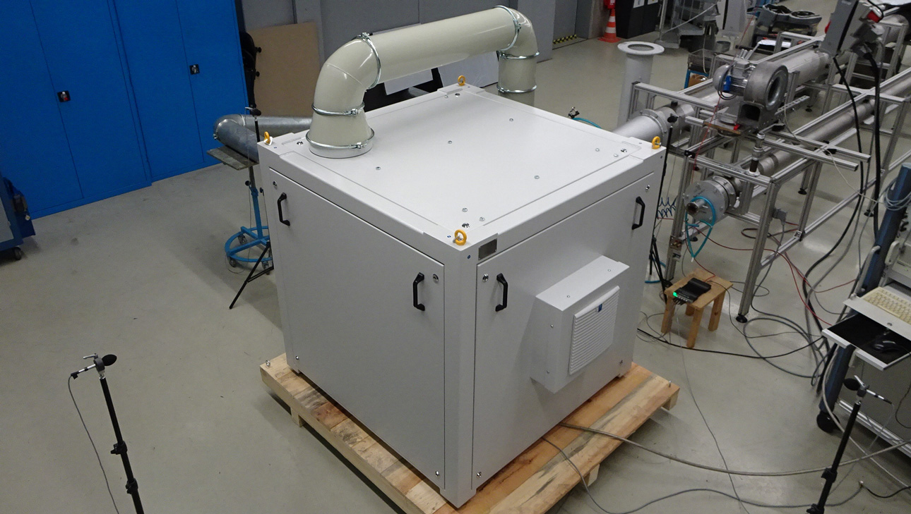Von der Konzeptphase bis zur schalltechnischen Abnahme übernimmt Elektror die komplette Entwicklung: Auslegung und Konstruktion von Schalldämmhaube, Ventilator und Anschlüssen werden im eigenen Haus realisiert. Die schalltechnischen Vermessungen erfolgen im firmeneigenen Luftlabor unter praxisnahen Bedingungen – ein entscheidender Schritt zur verlässlichen Einhaltung der gesetzlichen Emissionsgrenzen.