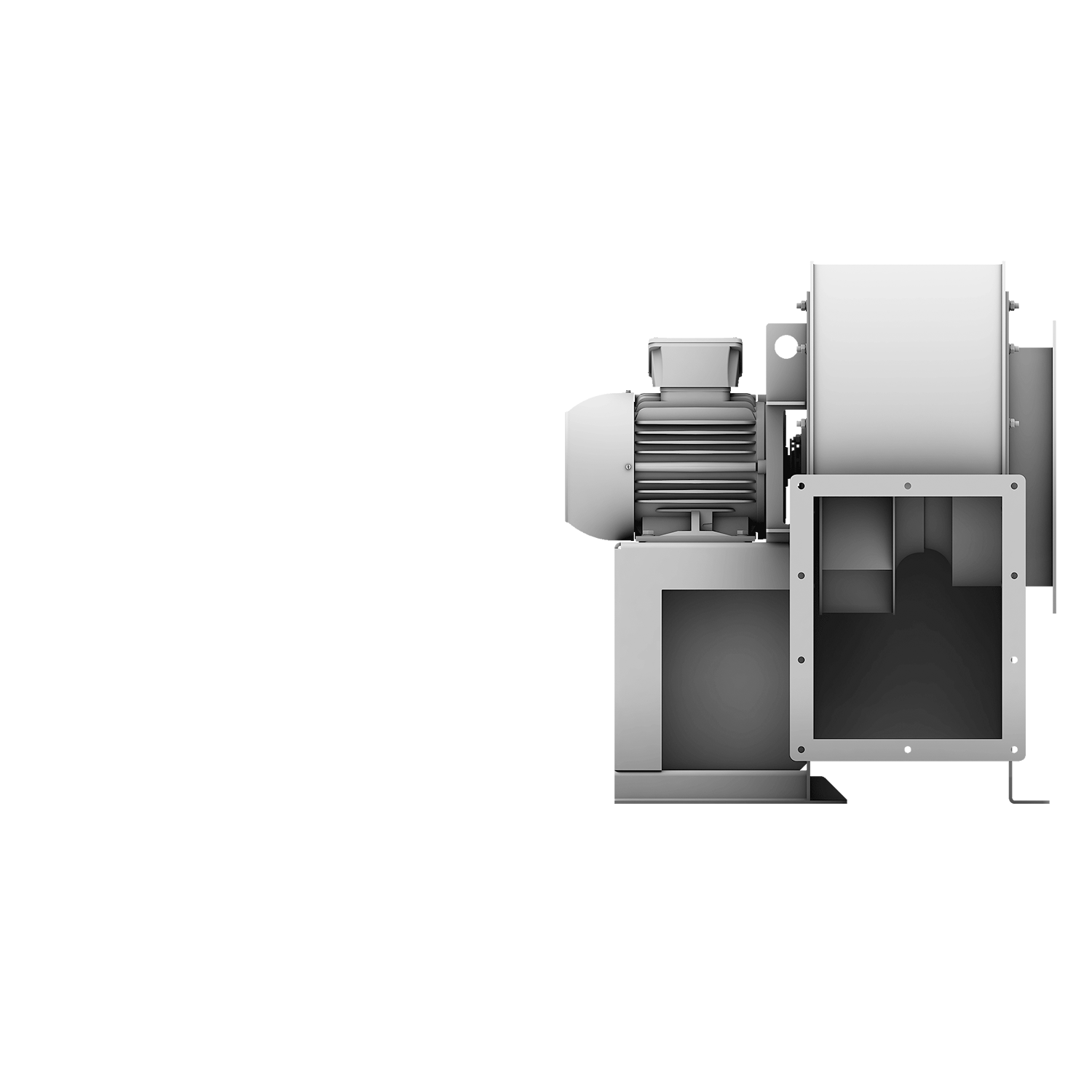 Bis 260 m³/min und 4.800 Pa. Rückwärtsgekrümmte, hocheffiziente Laufräder aus Stahl. Sehr hoher Wirkungsgrad, geringer Energieverbrauch. Gehäuse aus Stahl. Variable Anschlussmöglichkeiten.