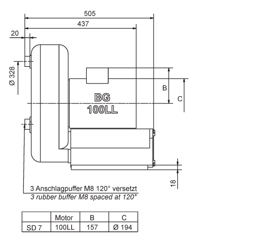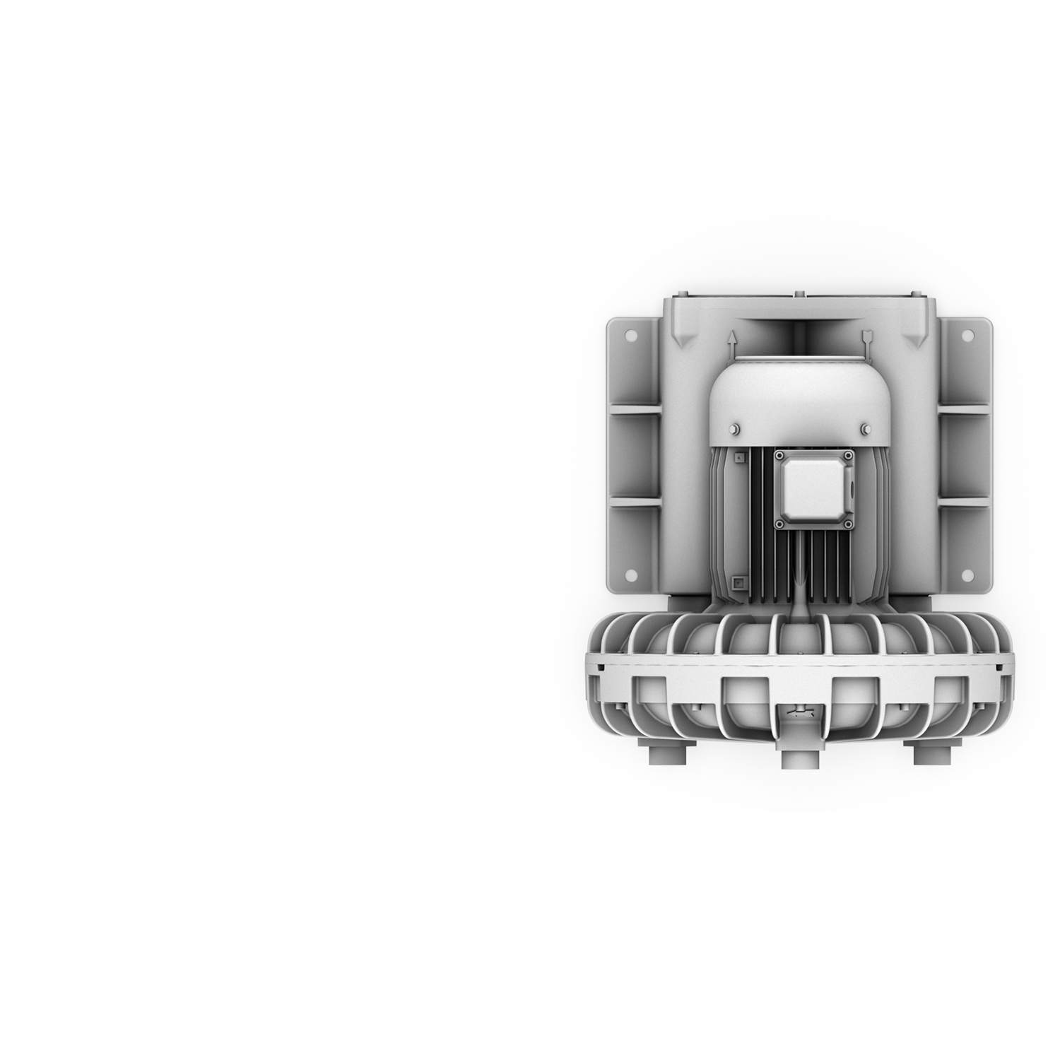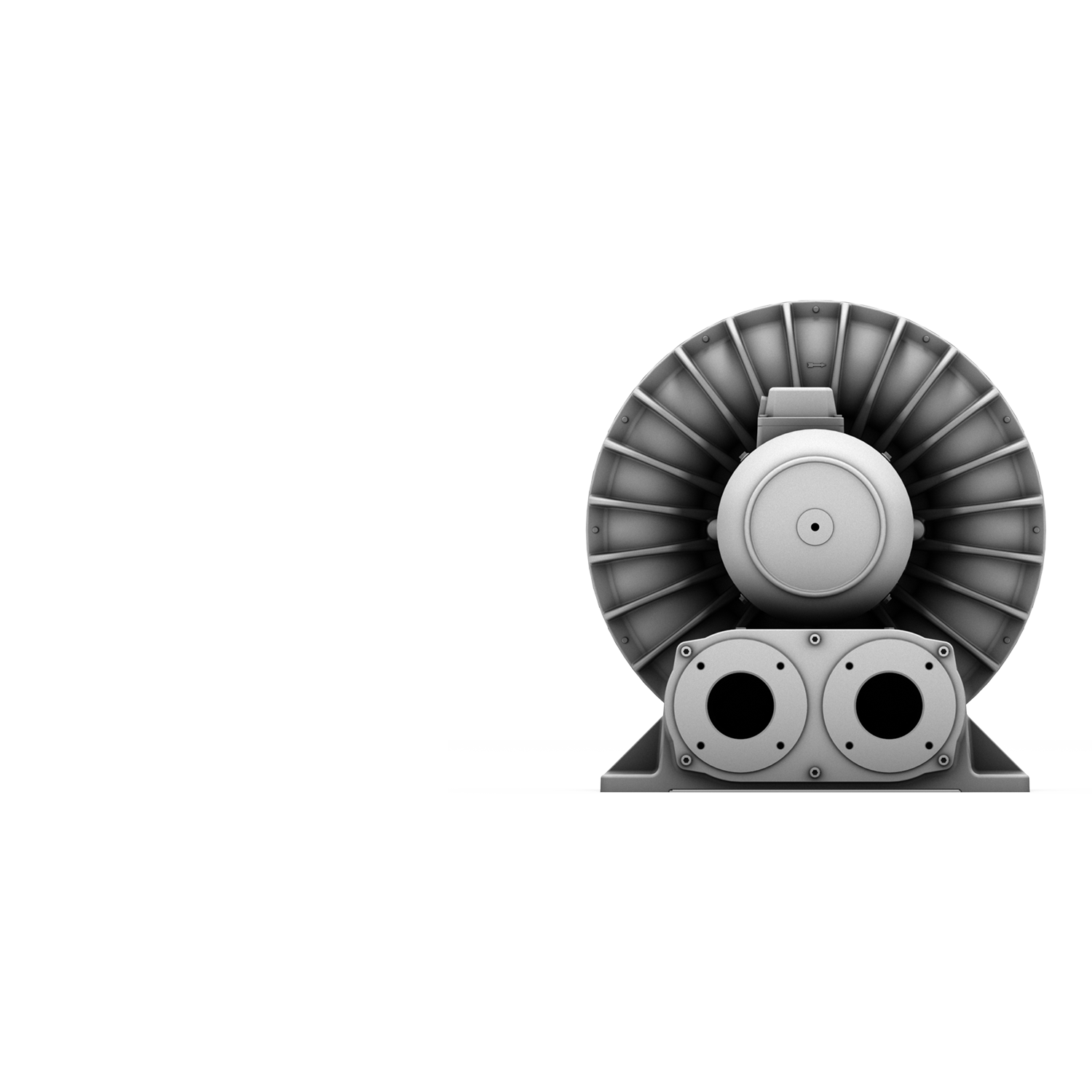 Bis 19 m³/min und 410 mbar. Gehäuse und offene/geschlossene Laufräder aus Aluminiumguss. Direkter Antrieb, integrierter Schalldämpfer, kompakte Bauweise, weitgehend korrosionsbeständig.