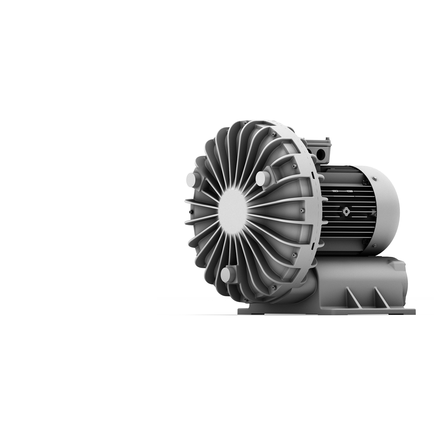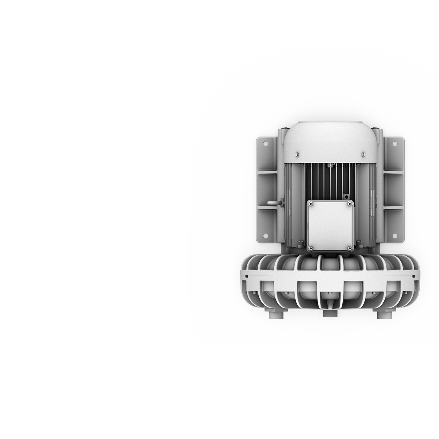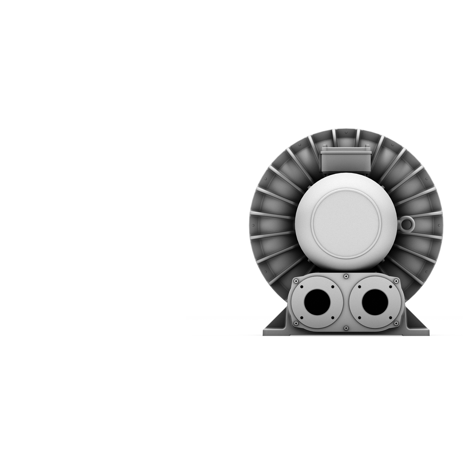 Bis 19 m³/min und 410 mbar. Gehäuse und offene/geschlossene Laufräder aus Aluminiumguss. Direkter Antrieb, integrierter Schalldämpfer, kompakte Bauweise, weitgehend korrosionsbeständig.
