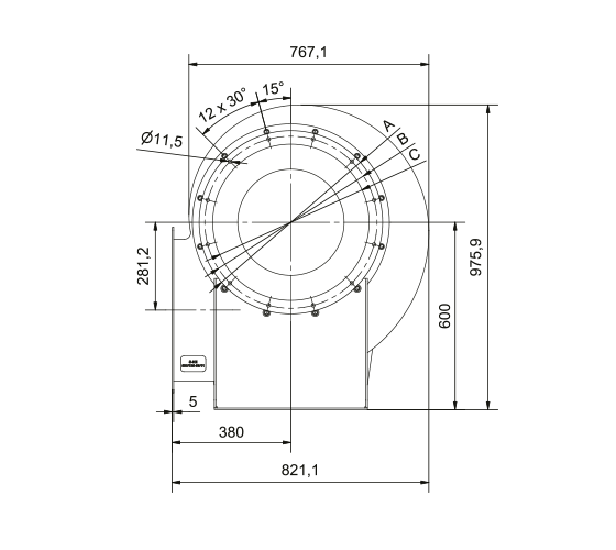 Up to 260 m³/min and 4,800 Pa. Highly efficient impellers bent backwards and made of steel. Very high level of effectiveness, low energy consumption. Housing made of steel. Variable connection possibilities.