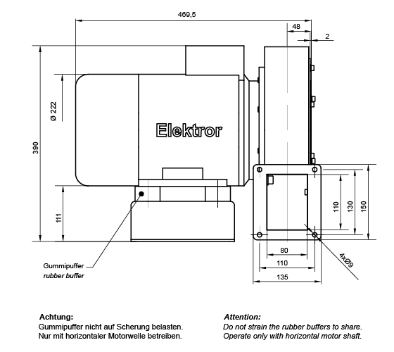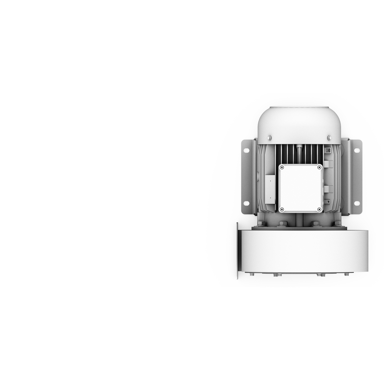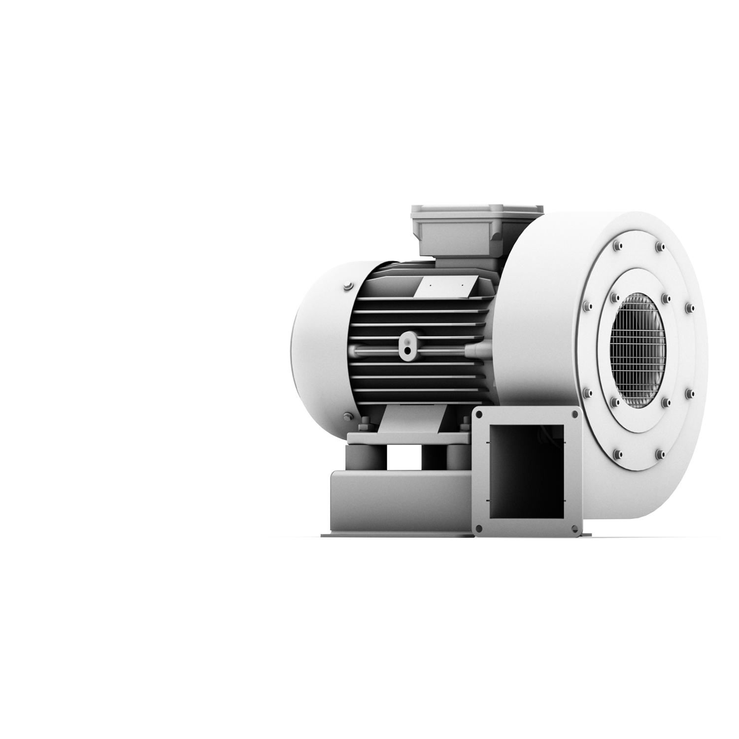 Bis 40 m³/min und 16.300 Pa. Verschleißfreier, direkter Antrieb über abgesetzte (FU) Frequenzumrichter. Hochdrehend bis 200 Hz (ca. 12.000 U/min). Gehäuse aus Stahl oder Edelstahl, rückwärtsgekrümmte Laufräder aus hochfestem Aluminium, Hybridlager, weitgehend korrosionsbeständig. Variable Anschlussmöglichkeiten.
