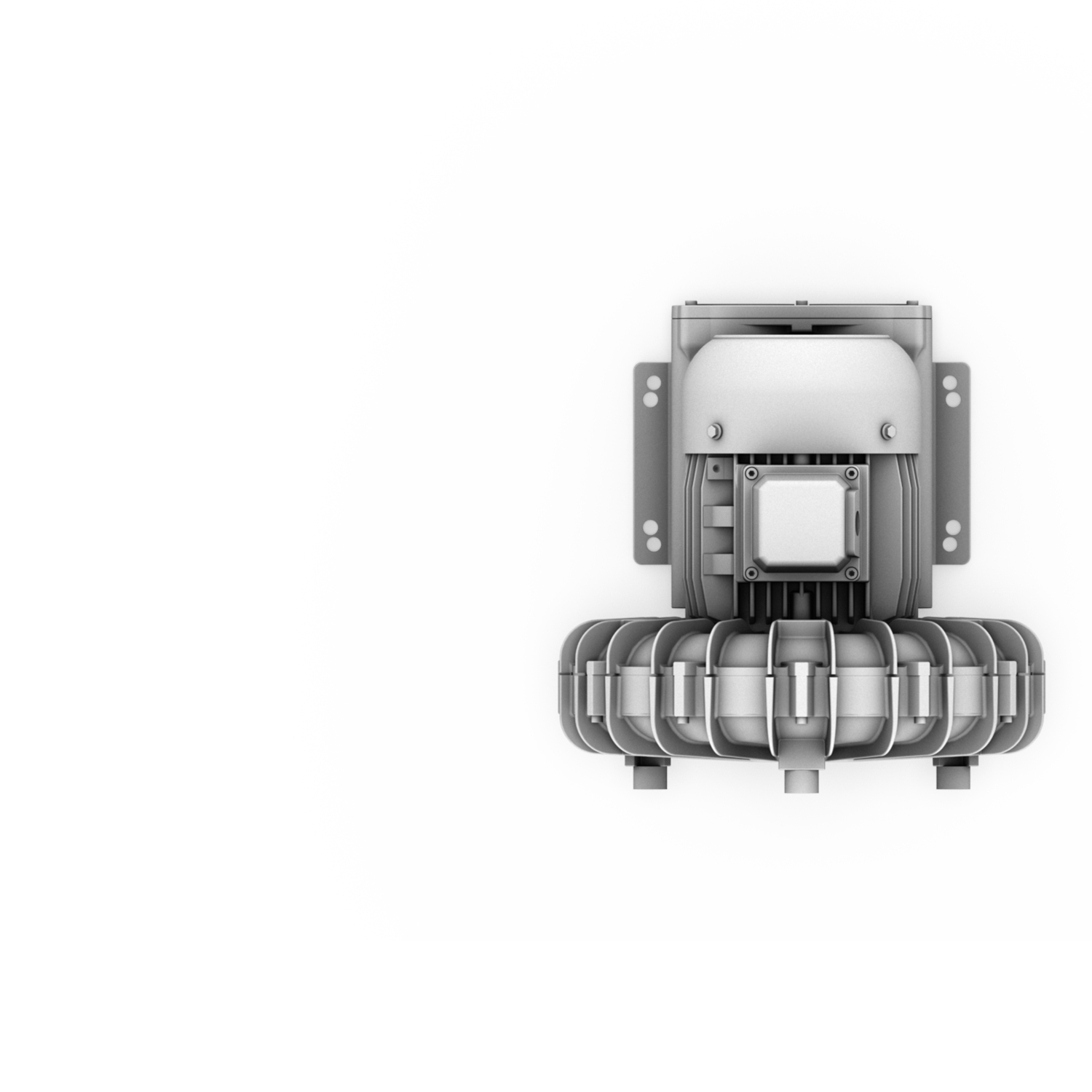 Up to 19 m³/min and 410 mbar. Housing and open/closed impellers made of cast aluminium. Direct motor, integrated silencer, compact construction, mostly corrosion-resistant.
