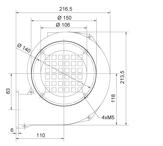 Hasta 95 m³/min y 2.200 Pa. Carcasa de fundición de aluminio, rodetes inclinados hacia delante de chapa de acero galvanizada, altamente resistente a la corrosión.