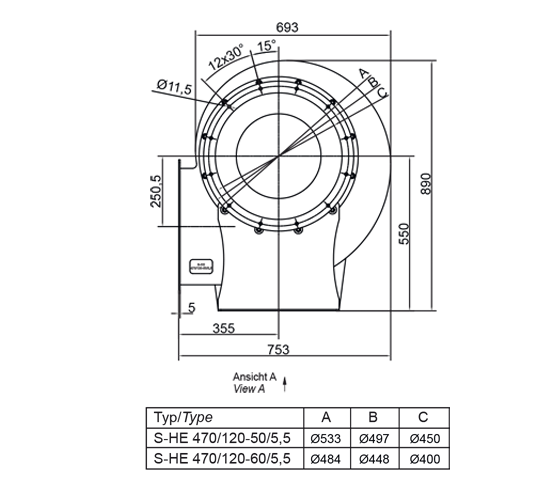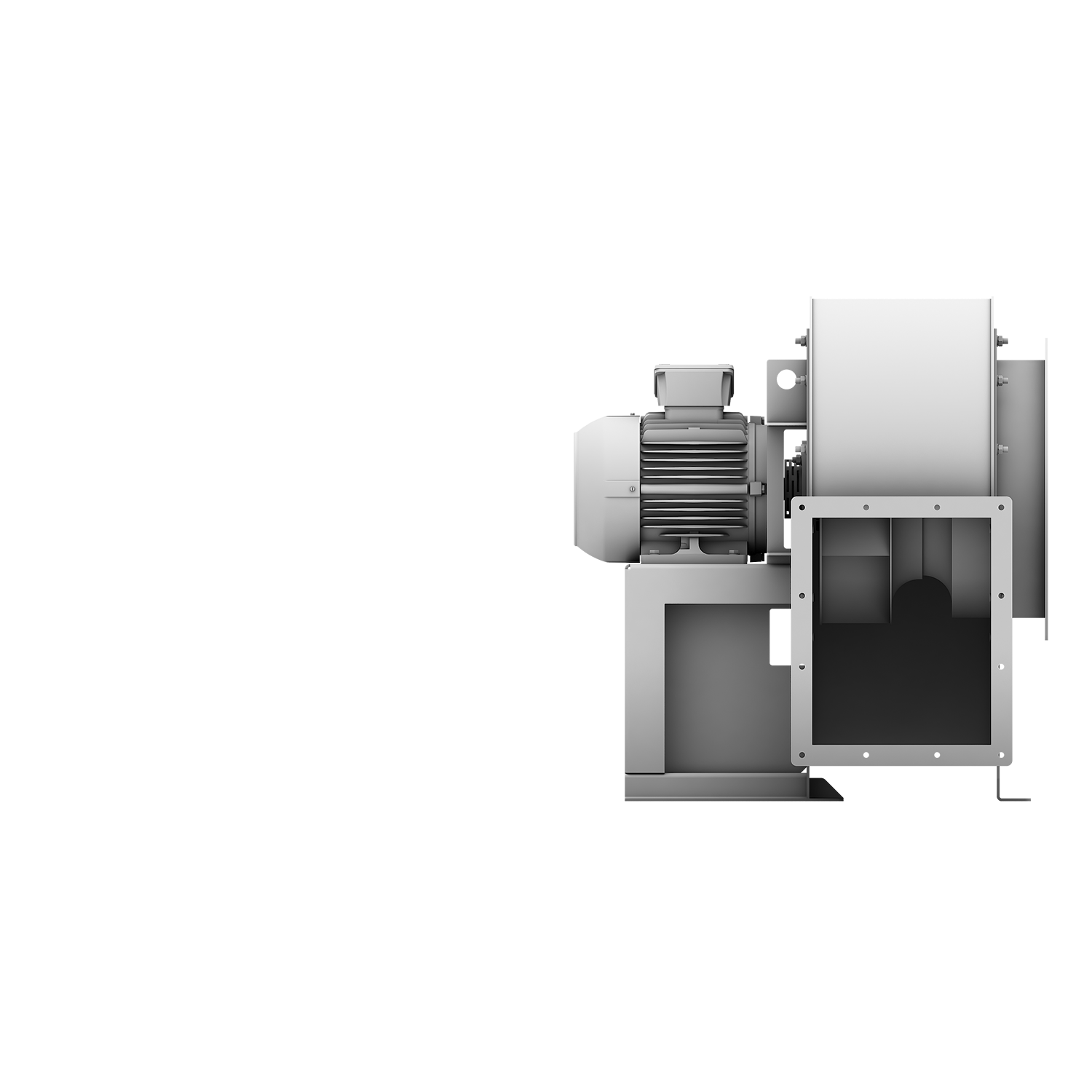 Hasta 260 m³/min y 4.800 Pa. Rodetes inclinados hacia atrás altamente eficientes de acero. Grado de eficacia muy elevado, consumo energético reducido. Carcasa de acero. Posibilidades de conexión variables.