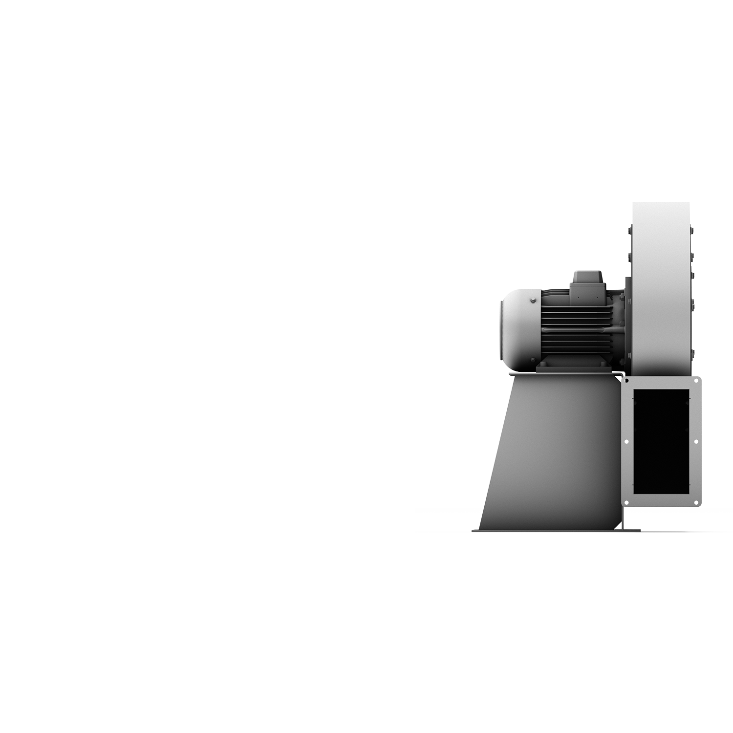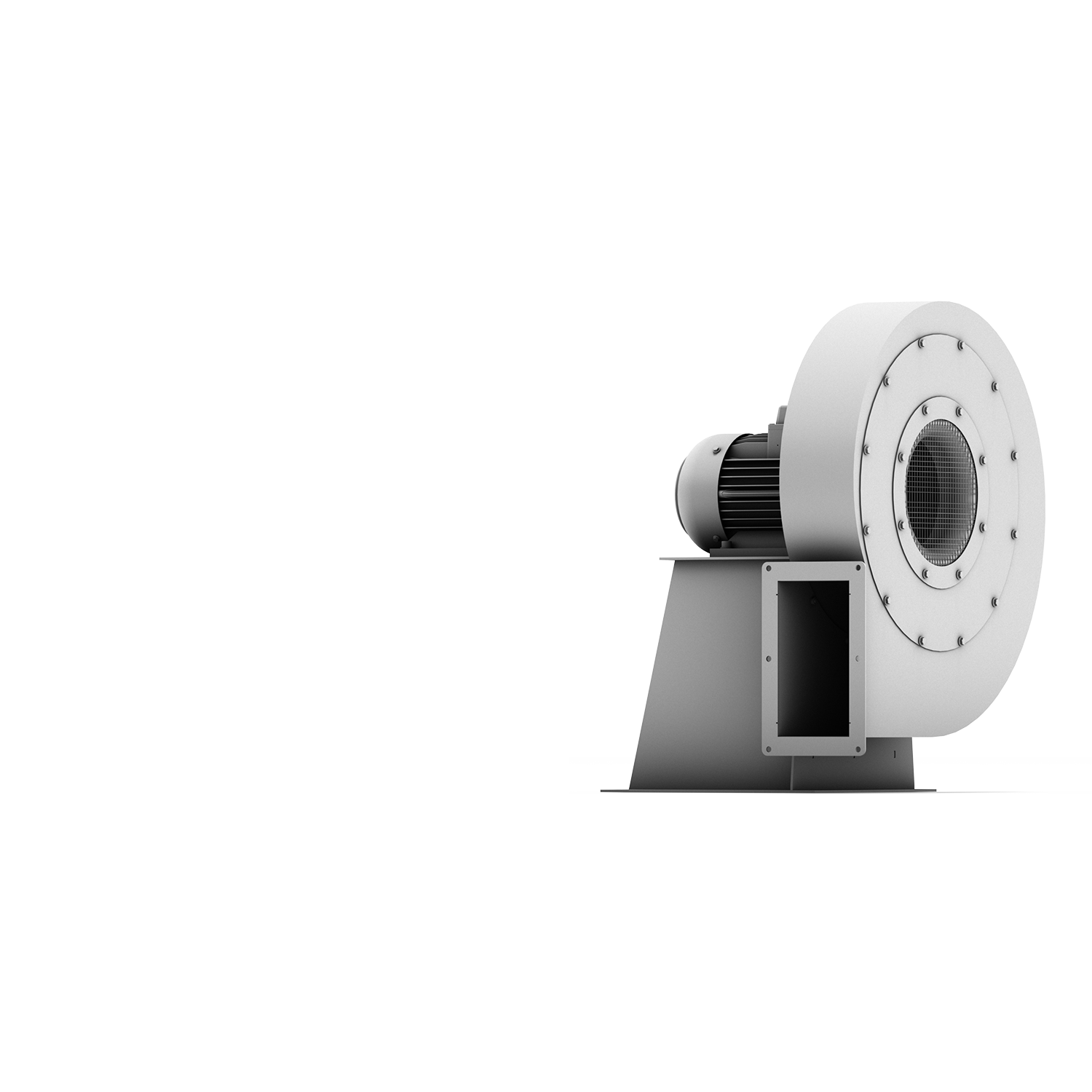 Hasta 180 m³/min y 10.000 Pa. Carcasa de acero o acero inoxidable, principalmente rodetes inclinados hacia atrás de acero inoxidable o aluminio. En la versión de acero inoxidable: eje de acero niro y máxima resistencia a la corrosión. Posibilidades de conexión variables.