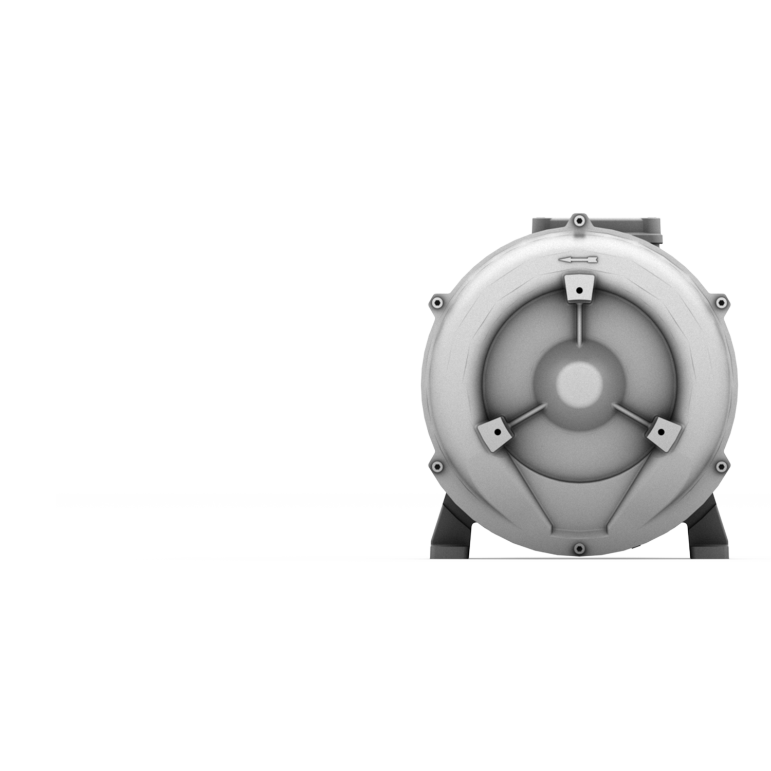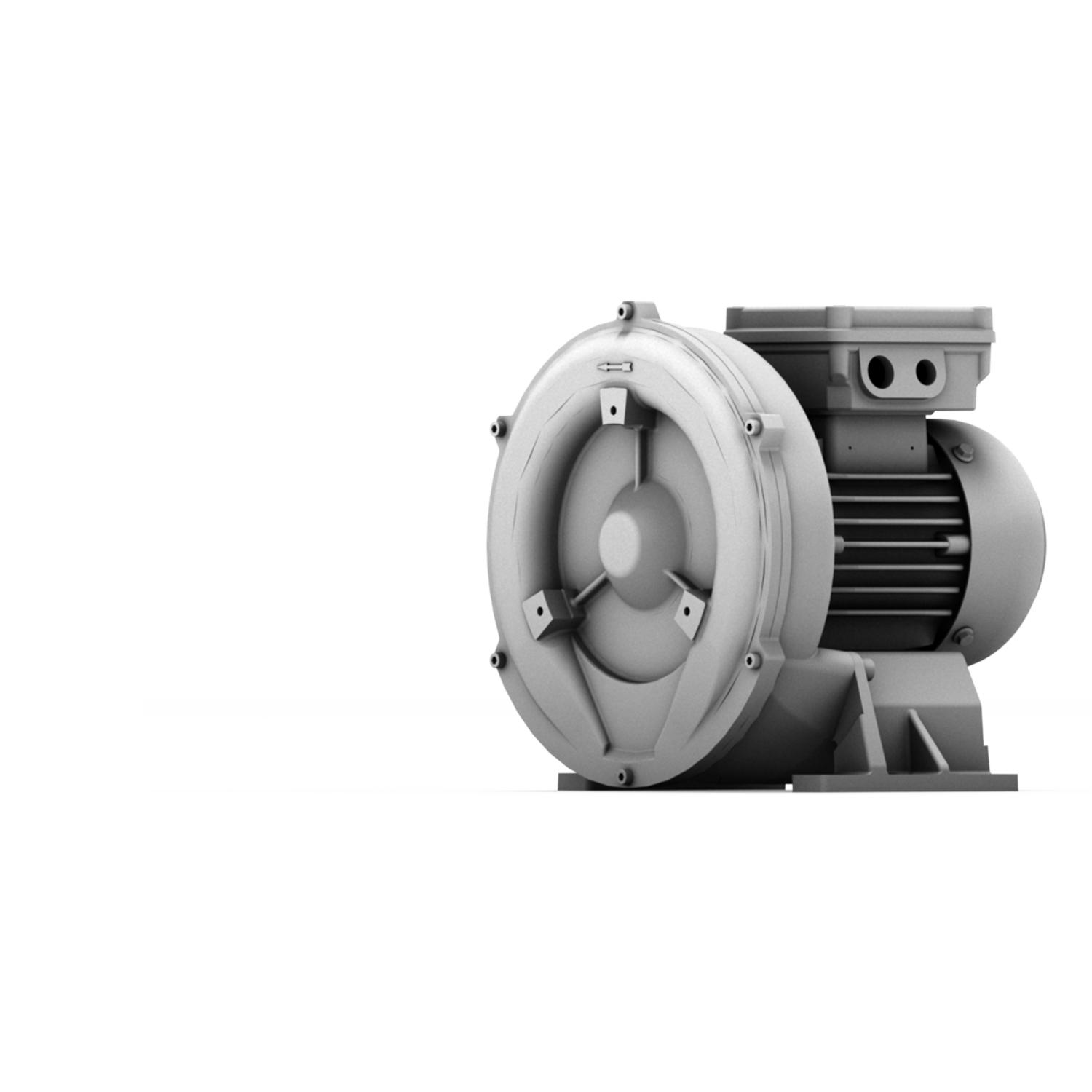 Hasta 10,5 m³/min y 370 mbar. Accionamiento directo libre de desgaste a través de convertidores de frecuencia instalados a distancia (FU) o montados (FUK). Aumento de número de revoluciones hasta 80 Hz (aprox. 4.700 rpm). Carcasa y rodetes abiertos/cerrados de fundición de aluminio. Silenciador integrado, estructura compacta, altamente resistente a la corrosión.