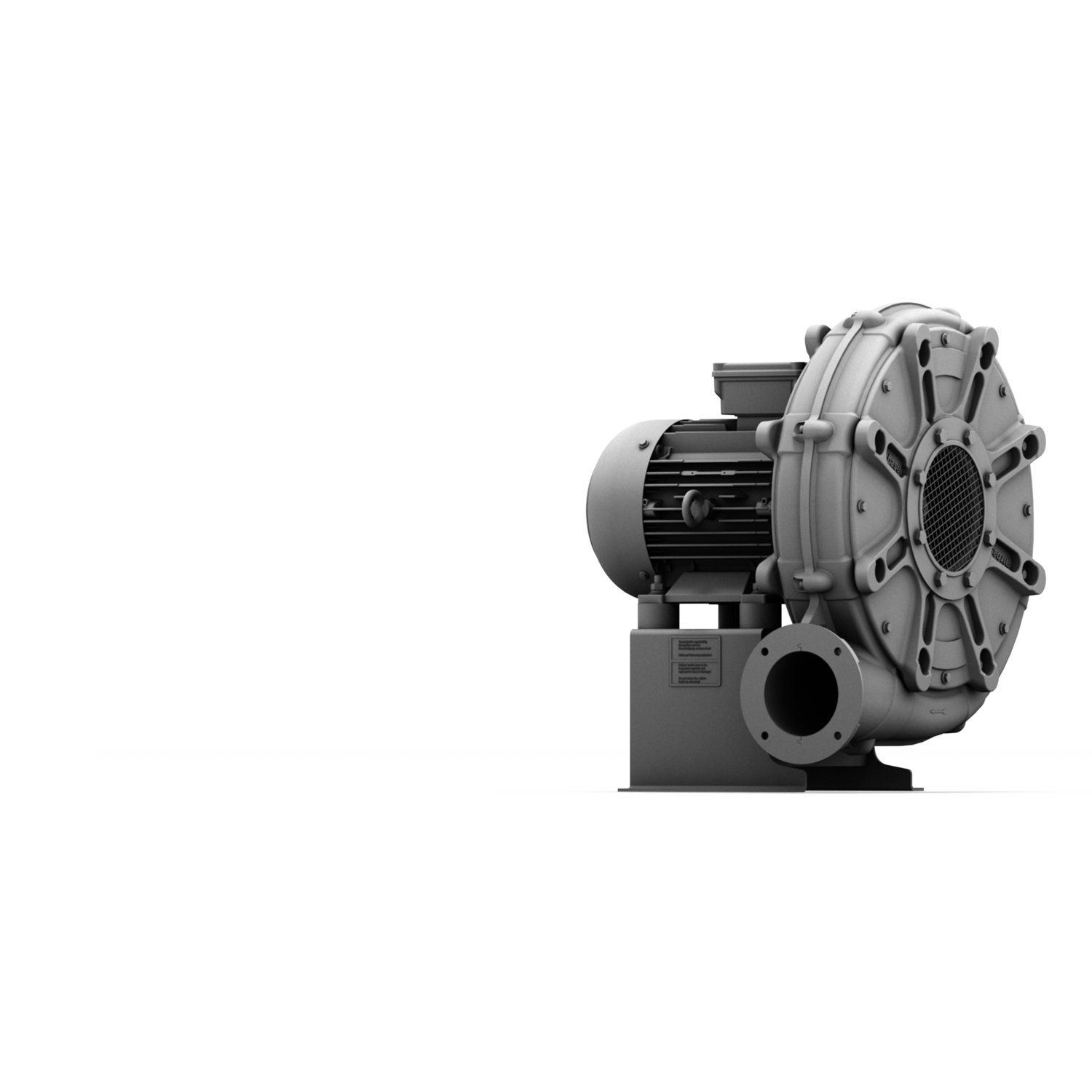 Nos ventilateurs radiaux de la série HRD transportent jusqu'à 97 m³/min et 21.000 Pa. Entraînement direct et sans usure par convertisseur de fréquence déporté (FU) ou monté (FUK). Vitesse plus élevée jusqu'à 135 Hz (env. 7.670 tr/min). Boîtier en fonte d'aluminium, roues principalement courbées vers l'arrière, largement résistantes à la corrosion.