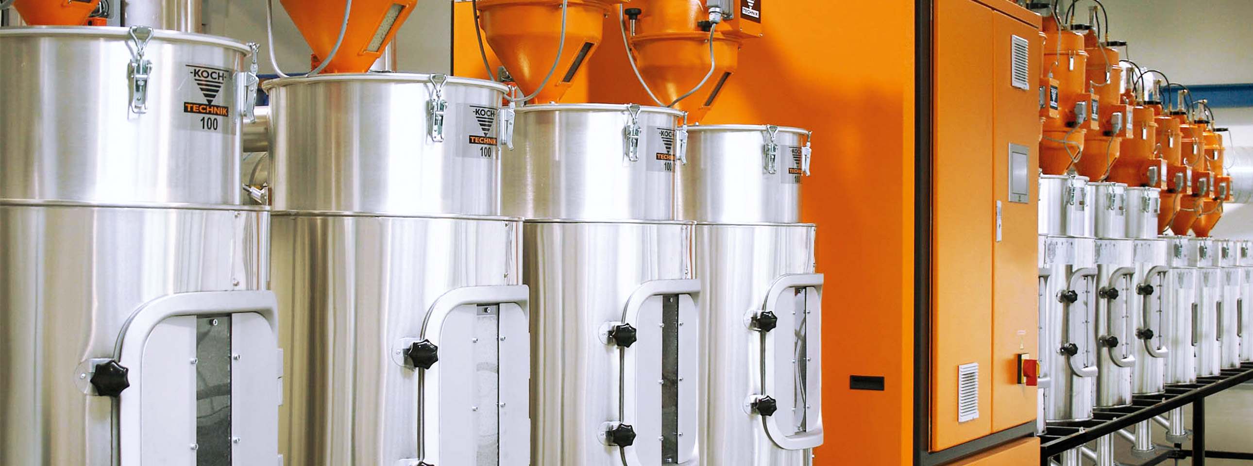 Synthetic granules form the basis of many plastic components. The quality of the resulting moulded part is now more than ever dependent on pre-drying of the granulate. Koch supplies dryers that extract excess mois-ture from the granulate. If the granulate is not perfectly dried, this can result in striation, em-brittlement, blistering or impairment of strength during the subsequent processing. Therefore, Koch employs gentle and controlled granulate drying using a patented system during plastic production.