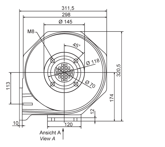 Fino a 142 m³/min e 10.600 Pa. Alloggiamento in alluminio fuso, giranti con pale prevalentemente rovesce in alluminio, resistente alla corrosione.