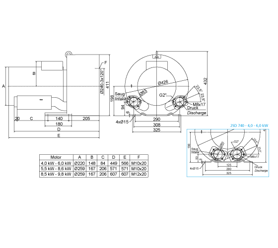 Do 21,83 m³/min i 750 mbar. Obudowa i otwarte wirniki – odlew aluminiowy. Napęd bezpośredni, zintegrowany czujnik temperatury, zintegrowany tłumik, kompaktowa konstrukcja, w znacznym stopniu odporna na korozję.